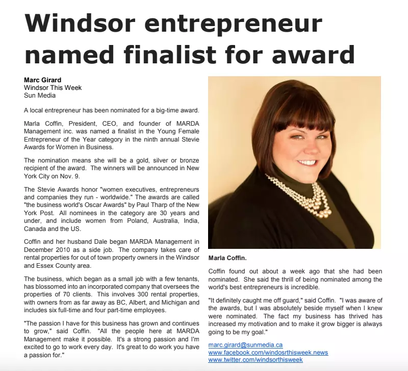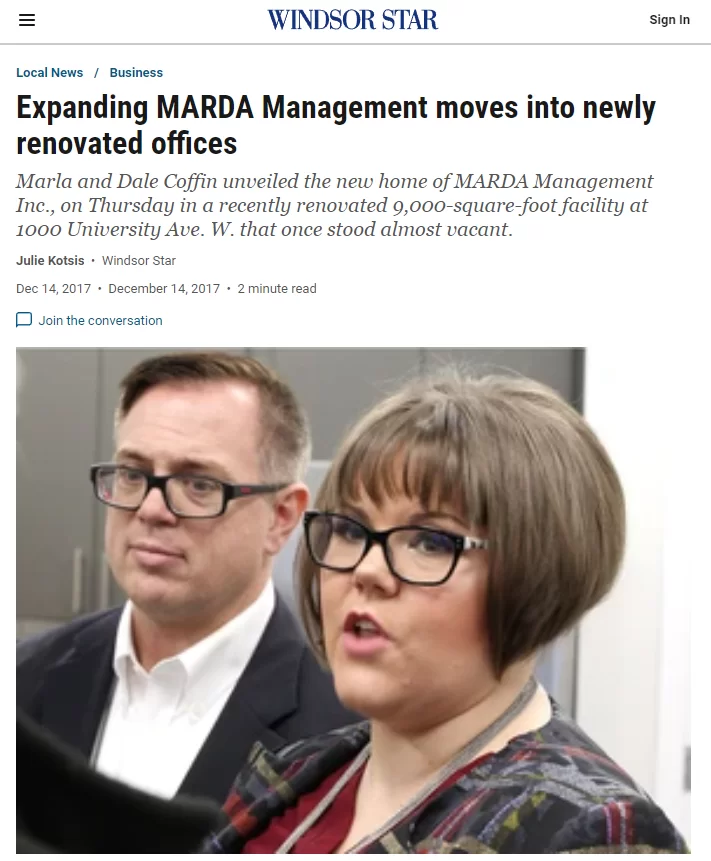 Locally owned by Windsor native, Marla Coffin and her husband Dale Coffin, the MARDA Management Inc. team consists of staff that are dedicated to pairing quality tenants with quality rental units. Our team works consistently to ensure that our owners’ investment properties are run effectively. We place the utmost emphasis on integrity, honesty, industry knowledge and communication to ensure that we satisfy our tenants’ needs while ensuring a viable business for our owners. We would love to be your Property Manager. We truly believe that the difference is in the management!